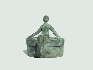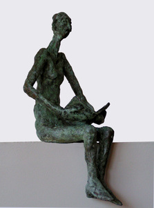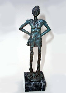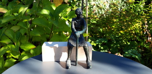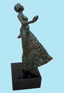 2003Abstract beeld van vrouw balancerend op de rand. Bronzen beeld op stenen sokkel.