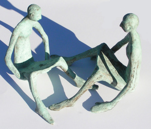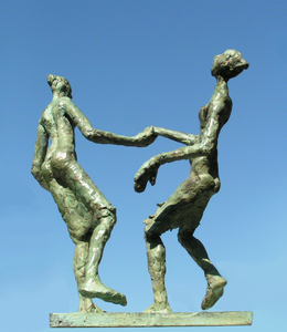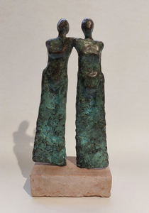 2008Twee bronzen vrouwenfiguren op aangegoten sokkel.